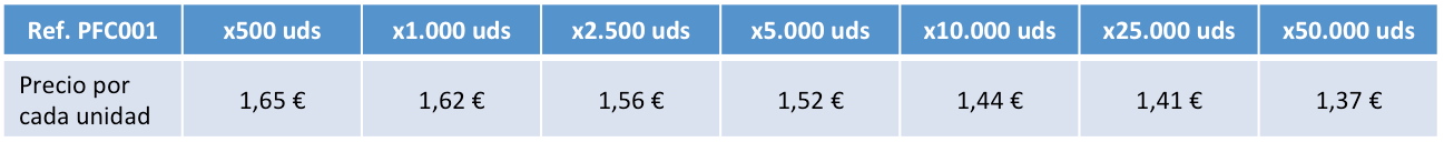 Se pueden personalizar a partir de 500 ud. sin coste extra.